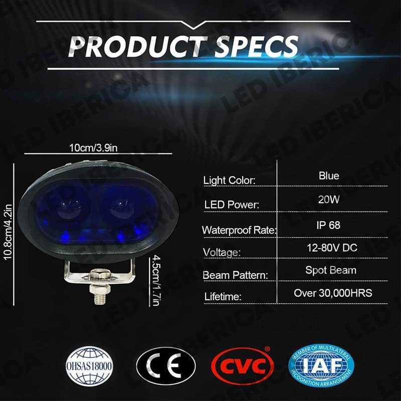 FOCO SEGURIDAD LED EMISOR EN AZUL PARA CARRETILLAS ELEVADORAS. MARQUE LA POSICIÓN DE ESTOS VEHÍCULOS PARA EVITAR ATROPELLOS O COLISIONES